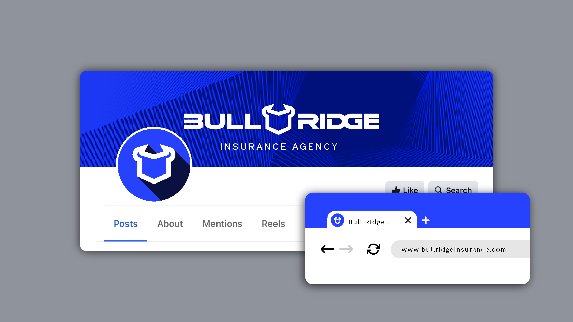 Consistency is key. The sharp angles and bold contrasts make Bull Ridge stand out across platforms. The blue is strong, the layout is clean, and the brand stays instantly recognizable.